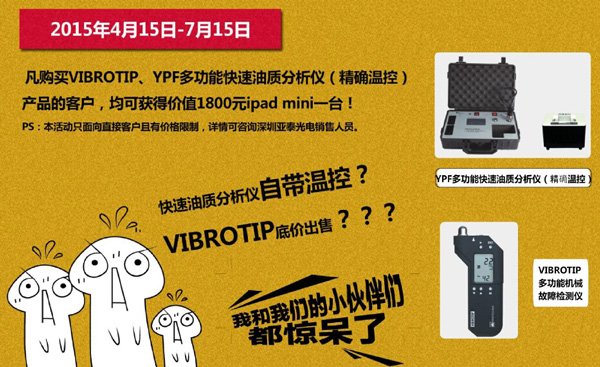 此外,應(yīng)廣大客戶朋友要求,德國普盧福vibrotip多功能機(jī)械故障檢測(cè)儀同期也將以底價(jià)面市,更有ipad mini 超值大禮等你來拿,數(shù)量不多,機(jī)會(huì)難得~