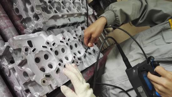 上圖為亞泰光電SIE超清系列視頻內(nèi)窺鏡在雷諾汽車(chē)鑄造車(chē)間檢查氣缸缸蓋做內(nèi)部探傷,以判斷是否合格.