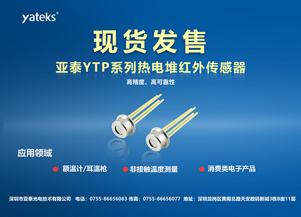 深圳市亞泰光電技術有限公司面對疫情新需求,緊急調整產品研制計劃,組織精兵強將研究封裝工藝,攻克了一些技術難題,引進了自動化封裝關鍵設備,項目組加班幾點設計制作夾具,編制工藝文件, 封裝線于5月15日正式投入生產。?現(xiàn)有YTP-518、YTP-538 可供客戶選擇。采用MEMS熱電堆芯片、TO-46金屬封裝、NTC阻值為100±1%,濾光片平均透過率可達85%(5.5-14μm),密封性10-9pa.m3/s,確保紅外測溫儀的高精度(精度可達正負0.1℃)。