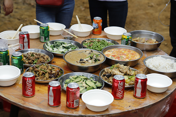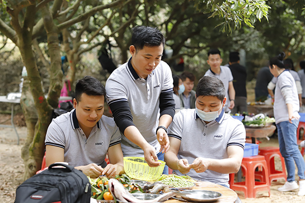 中午時分,年會開始了吃貨環節,大家自己動手、豐衣足食,各團隊將自帶的食材及酒水、飲料等歸集一起準備各自小組的午餐,各組隊成員有的切菜、有的洗菜,有的拾材,有的炒菜,一盤盤香噴噴、美味可口的家常菜西紅柿炒蛋、虎皮尖椒、年年有魚、肉沫茄子等美味可口的菜肴很快就做好并迅速被一掃而光,其樂融融,吃得好、喝得好,玩得好,好不熱鬧。