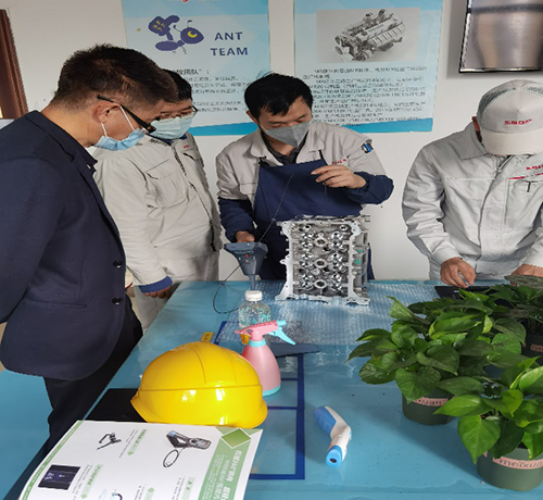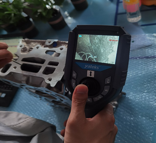 客戶主要用于檢查汽車發動機水泡情況,每臺發動機缸蓋都要檢查,一天檢查200多臺(分白夜班),一臺10多次,按缸蓋上面的紋路形狀來回拖動檢測。客戶之前買過別家定型管的內窺鏡,用了沒多久就壞了,而且操作起來不方便,客戶看過亞泰光電2.8mm工業內窺鏡,這次想看一下亞泰更細的內窺鏡,實測過程中,用2.2mm的內窺鏡檢測缸蓋內部時還有多余空間,能明顯看清內部拐彎處情況,還在一處發現內部有鑄造鐵屑,甲方相關設備管理維護人員對我們的內窺鏡效果比較滿意,雙方己確定后續深入合作計劃。