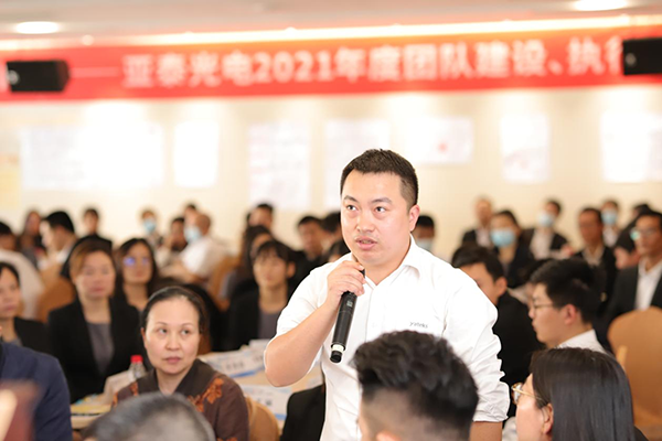 2021年12月10-11日為期兩天的亞泰光電2021年度全員團(tuán)隊(duì)管理、執(zhí)行力培訓(xùn)圓滿結(jié)束。本次培訓(xùn)邀請(qǐng)了廣東國(guó)元企業(yè)管理有限公司創(chuàng)始人李國(guó)林和尹冬元老師現(xiàn)場(chǎng)授課,公司領(lǐng)導(dǎo)及全體員工參加了本次活動(dòng)。