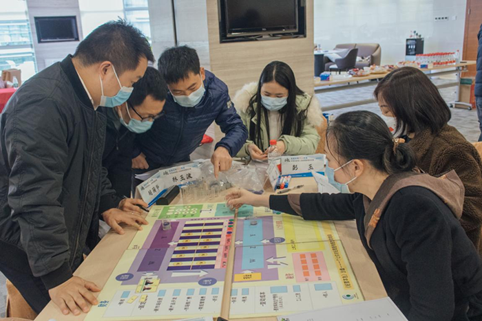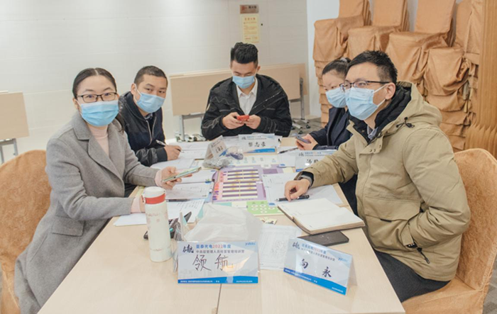 參訓(xùn)學(xué)員分成6個小組,模擬企業(yè)實際運作背景,每組代表一家虛擬企業(yè),各小組成員按角色分工,分別擔任企業(yè)中的總裁、市場營銷總監(jiān)、生產(chǎn)總監(jiān)、財務(wù)總監(jiān)、研發(fā)總監(jiān)等職位,一家家企業(yè)相繼成立。