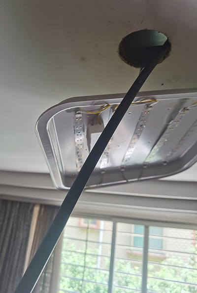 根據(jù)客戶描述和對其需求進行分析,亞泰工程師選配了兩款內(nèi)窺鏡產(chǎn)品趕到客戶現(xiàn)場實地勘查,工程師現(xiàn)場觀察衣柜旁吊頂表面發(fā)霉嚴重,在征得客戶同意后,工程師先使用電動工具將吊頂打了一個10mm的圓孔,然后將亞泰5mm遠焦光纖內(nèi)窺鏡管線穿入輔助工具定型管伸入吊頂內(nèi)部以快速尋找問題點,檢測過程工程師根據(jù)定位使用中焦鏡頭近距離觀察屋頂內(nèi)部情況。客戶根據(jù)內(nèi)窺鏡觀察的內(nèi)部情況,逐步查出屋頂裂縫大小及位置、漏水點位和吊頂木板結(jié)構(gòu)的腐蝕情況,并做好距離位置標記,短短幾分鐘通過內(nèi)窺鏡檢測非常準確、方便的定位到了問題點,整個過程操作簡單、快速、通過亞泰內(nèi)窺鏡本次檢測,為該客戶后續(xù)房屋維修提供了重要參考數(shù)據(jù),為客戶后續(xù)資金的合理利用提供了保障。