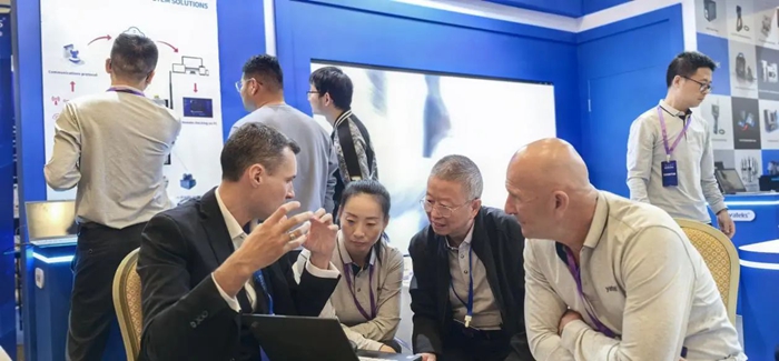亞泰光電工作人員與國(guó)際客戶進(jìn)行技術(shù)交流
