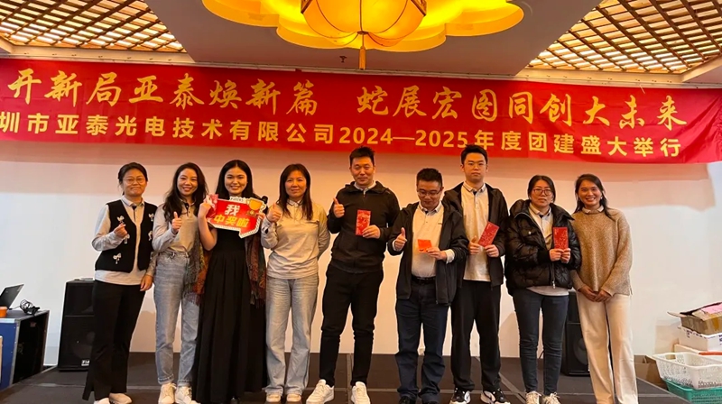 12月13日,深圳亞泰光電迎來了公司2024—2025年度的團建盛典。在這個充滿希望與挑戰的新起點上,全體員工齊聚一堂,以“龍開新局,亞泰煥新篇;蛇展宏圖,同創大未來”為主題,共同開啟了一段難忘的旅程。會場內洋溢著對過去一年成就的自豪和對未來發展的期待,每一個微笑背后都蘊含著對公司未來的堅定信心。