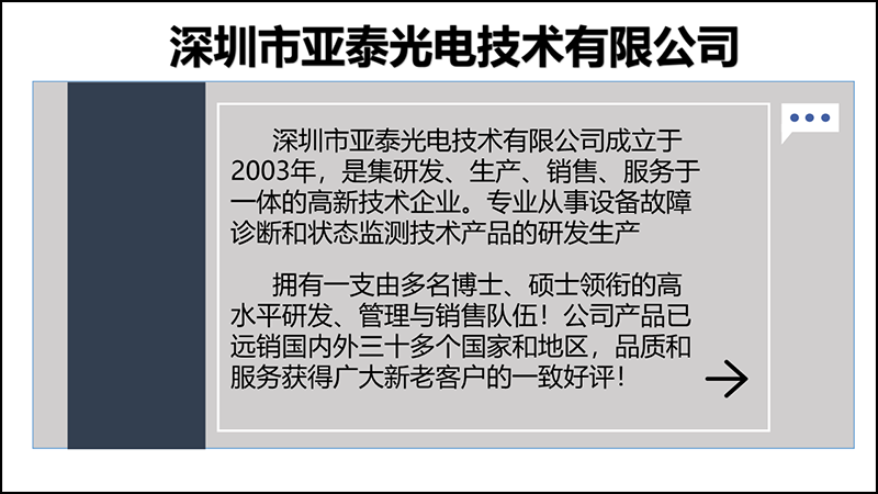 亞泰光電,國家高新技術企業和深圳知名品牌,10余年工業內窺鏡和油品分析儀研發、生產行業經驗,國內外知名企業合作供應商,產品優惠熱線:13316911816(微信同號) 0755-86656096 0755-86656390 聯系我們獲取更多優惠詳情,期待您的指導與交流!