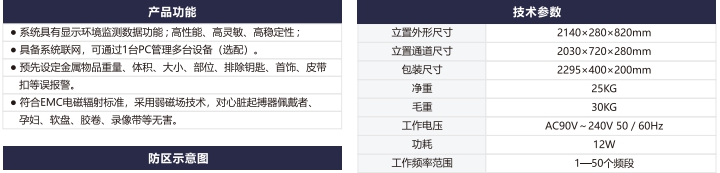 人體測(cè)溫安檢門一體機(jī)II型遠(yuǎn)距離高精度人體測(cè)溫安檢門,集帶人體溫度檢測(cè)和金屬探測(cè)為一體的安全檢測(cè)門,門頭裝有高精度的體溫檢測(cè)探頭,探測(cè)角度可以上下移動(dòng), 能夠測(cè)量人體額頭的表面溫度,然后根據(jù)人體額頭的溫度與體溫的關(guān)系得到人體的實(shí)際體溫。檢測(cè)儀的光學(xué)組件將額頭發(fā)射和反射的能量匯集到傳感器上,通過電子組件將此信息轉(zhuǎn)化成溫度讀數(shù)并顯示在顯示面板上,當(dāng)溫度讀數(shù)超過高溫報(bào)警值時(shí),儀器會(huì)發(fā)出報(bào)警聲.報(bào)警溫度可隨意設(shè)置.具有防水、防火、防腐等特點(diǎn)。適用于管制刀具和槍支等危險(xiǎn)品的安全檢查,廣泛應(yīng)用于適用于機(jī)場(chǎng),車站,出入境檢查站,等人員密集場(chǎng)所。是防止疫情擴(kuò)散的有效手段。