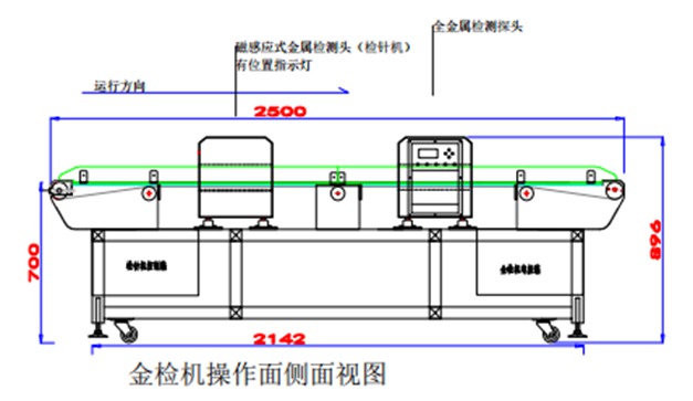 采用磁感和電平衡檢測雙系統(tǒng)探測型數(shù)字式金屬檢測機(jī),整機(jī)采用304不銹鋼設(shè)計(jì)制作,并且前探頭采用傳統(tǒng)檢針機(jī)制作有位置指示燈功能,第二組探頭為全金屬檢測機(jī)系統(tǒng),可檢測出細(xì)小的鐵、銅、鋁、不銹鋼等所有金屬異物。